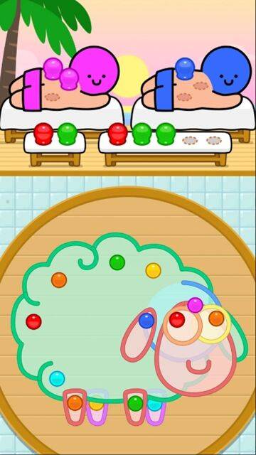 拧螺丝逻辑换皮。 核心操作逻辑就是拧螺丝那套——颜色匹配、拾取、放置。但换成拔罐养生主题之后,画面看着舒服多了,拧螺丝拧得手疼,拔罐拔得舒坦。